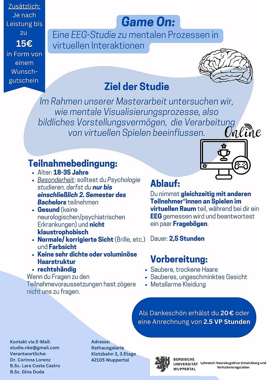Hast du Lust deine mentale Visualisierungsfähigkeit in virtuellen Spielscenarien zu testen? Dann bist du bei unserer Studie "Game On" genau richtig!